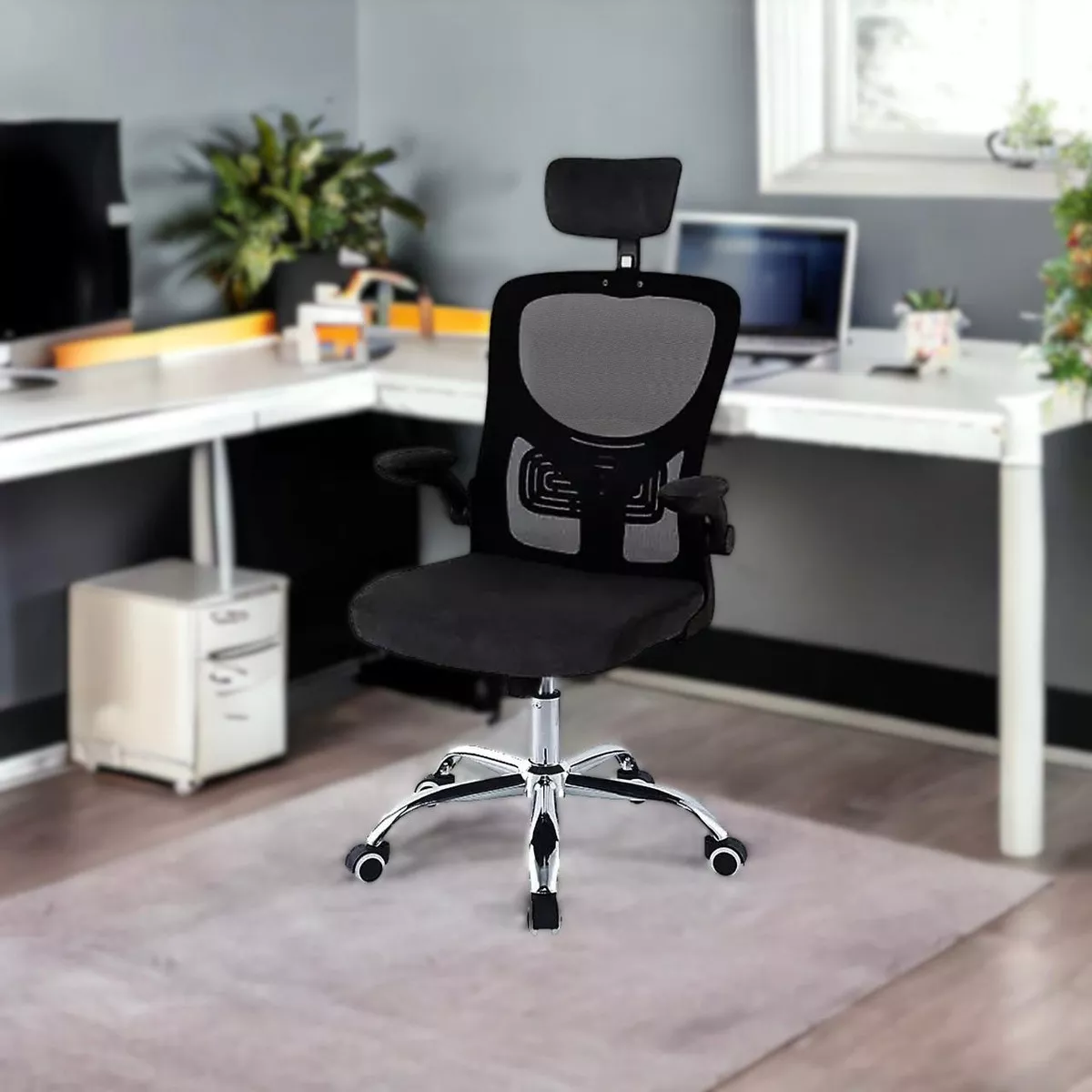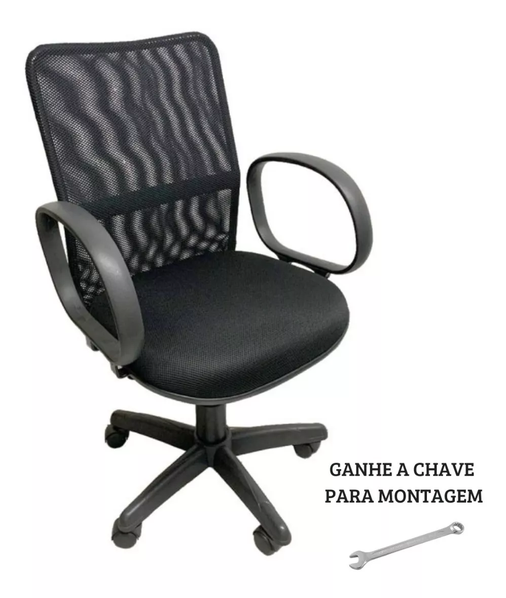 Uma cadeira de escritório com tela mesh proporciona ventilação e maior conforto ao longo do dia.