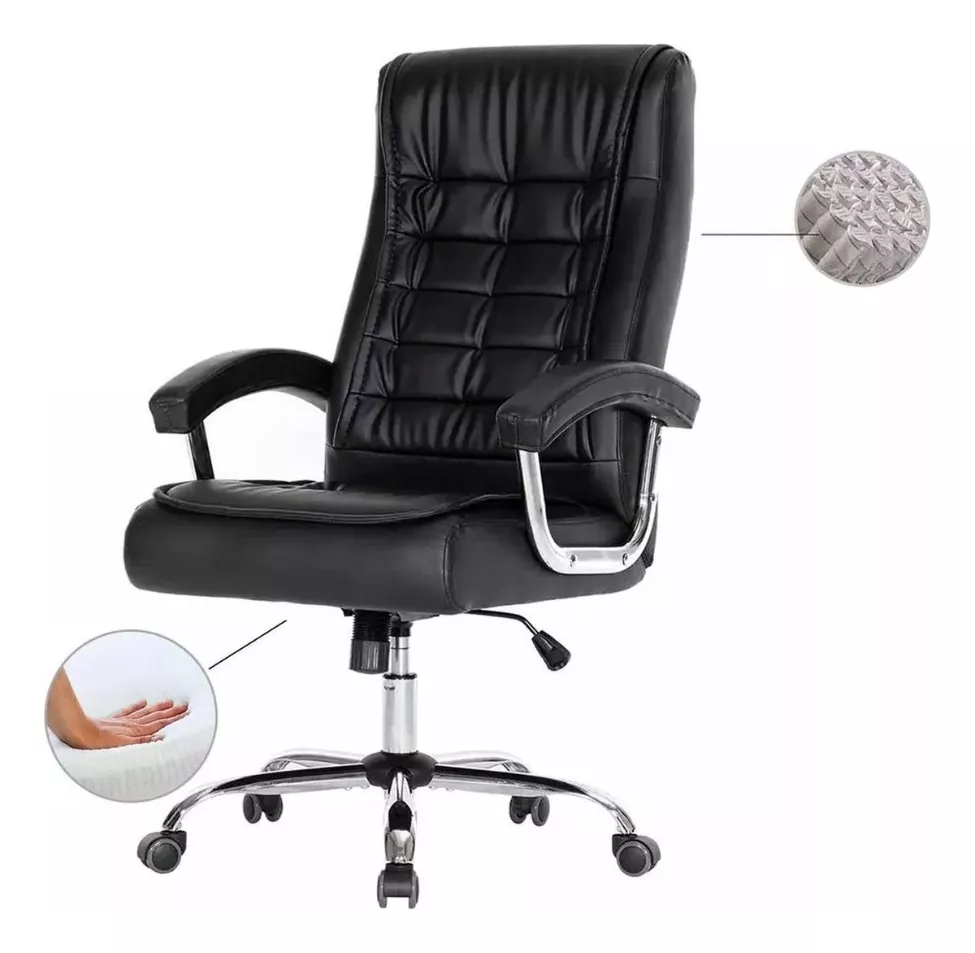 Com estofamento em couro sintético de alta qualidade e uma estrutura reforçada em aço, a Big Presidente proporciona durabilidade e resistência, suportando até 150 kg. Os apoios de braço e lombar bem estruturados garantem uma postura correta e confortável, reduzindo o impacto da rotina de trabalho sobre a coluna.