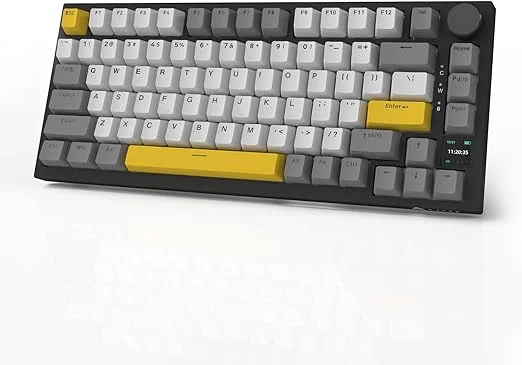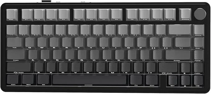 O layout 75% é compacto na medida certa, mantendo teclas essenciais sem ocupar muito espaço. Ele ainda conta com conectividade tripla (USB-C, Bluetooth 5.0 e 2.4G) e uma bateria potente de 5000mAh, o que garante dias e dias longe da tomada, mesmo com RGB ativado. E, claro, os switches hot-swap permitem personalizar o teclado conforme seu estilo — seja Red, Blue ou Brown.