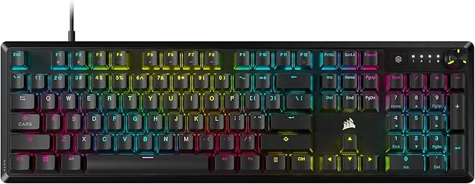 | Recursos Extras | Construção robusta em alumínio, RGB iCUE totalmente personalizável Teclas macro programáveis, Polling rate de até 8000Hz, Teclas PBT Double-Shot |