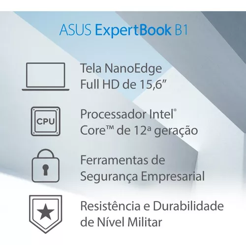 O Asus ExpertBook é perfeito para quem precisa de um notebook empresarial confiável e durável. Voltado para a experiência empresarial, ele traz maior segurança com a trava Kensington, a webcam com tampa física e a certificação MIL-STD-810H, permitindo que você o utilizem sem preocupações fora de casa.